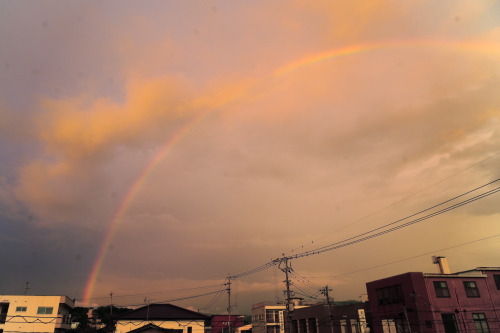 夕方、2階の窓から大きな虹が見えました。